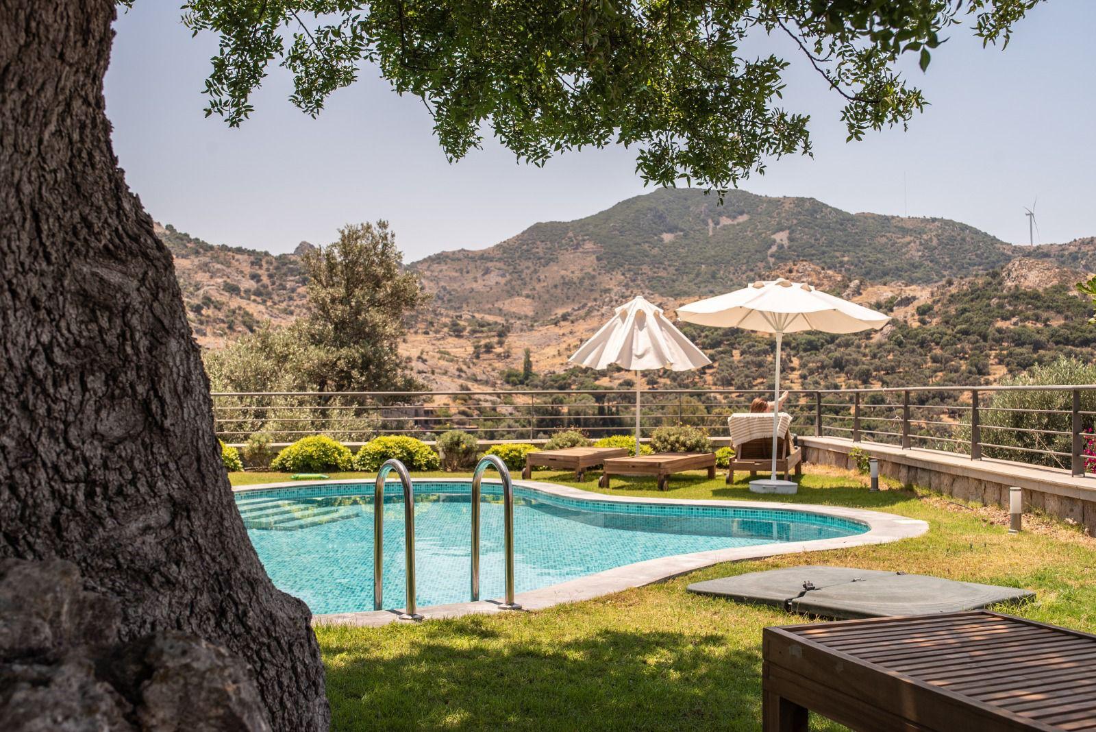 The villa offers three well-appointed bedrooms, including a large master suite complete with an elegant en-suite bathroom and walk-in dressing room. The master bedroom opens directly onto the main terrace, where you can start your mornings with tranquil views of Yalikavak and the sea beyond.