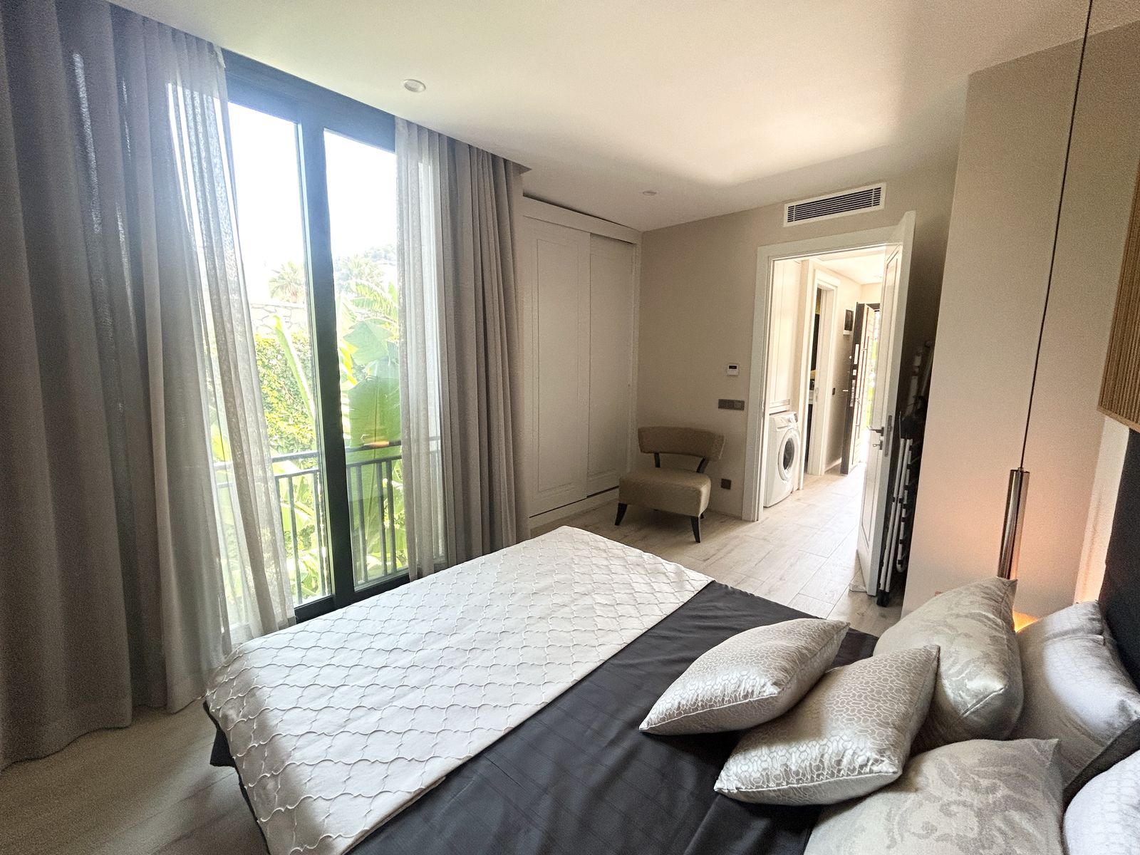 Nestled in a boutique complex of only 18 apartments across 5 blocks, this residence stands out for its intimate atmosphere and refined design. The development has been carefully planned to provide privacy and serenity, while still being in the very heart of Yalikavak. The complex’s beautifully landscaped communal areas create a welcoming environment, complete with a shared swimming pool, an on-site caretaker, and a security camera system for peace of mind.Modern Comforts & Elegant Design
