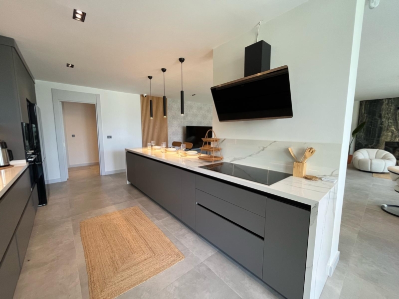 Step outside and unwind in your private sanctuary. The beautifully landscaped garden features a luxurious swimming pool, a cozy fire pit, and multiple lounging areas designed for entertaining or quiet evenings under the stars. The villa’s automatic irrigation system keeps your garden lush and green all year round with minimal maintenance.