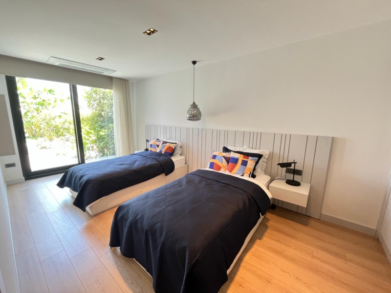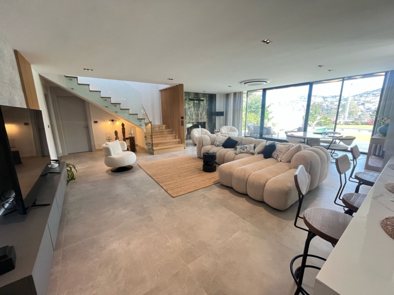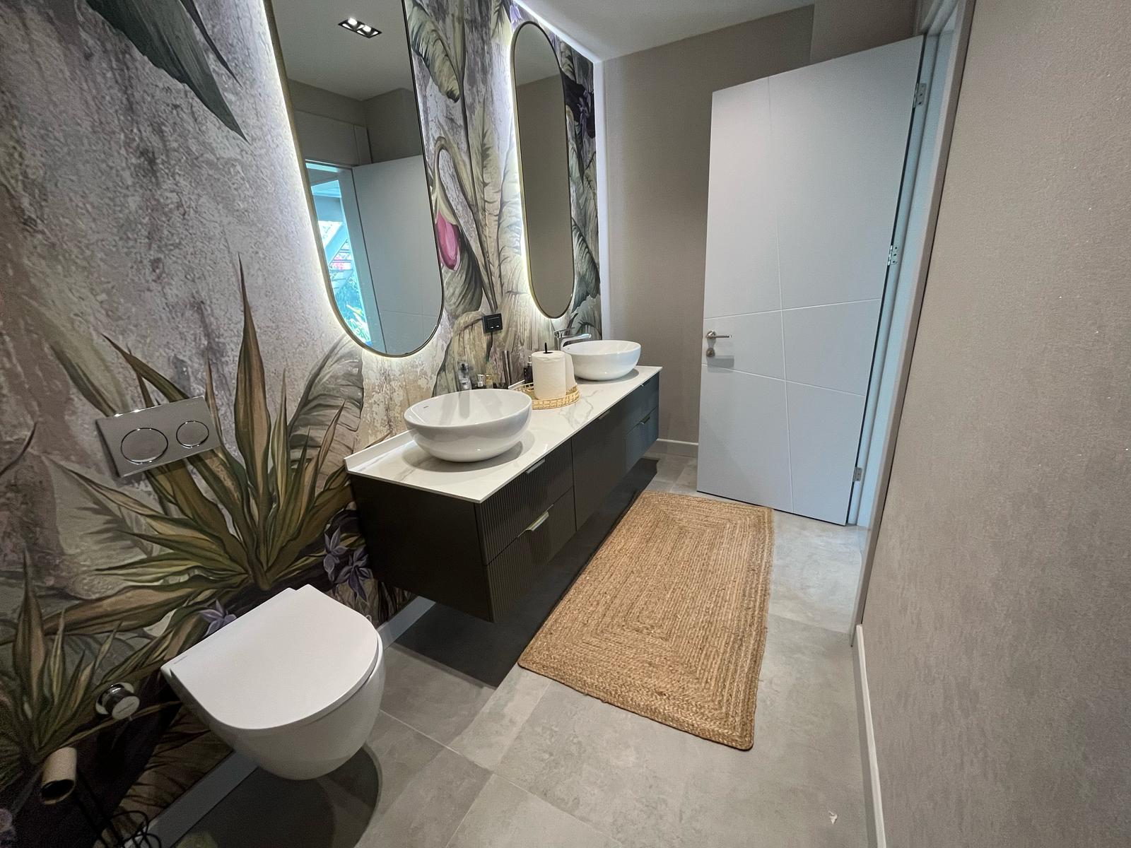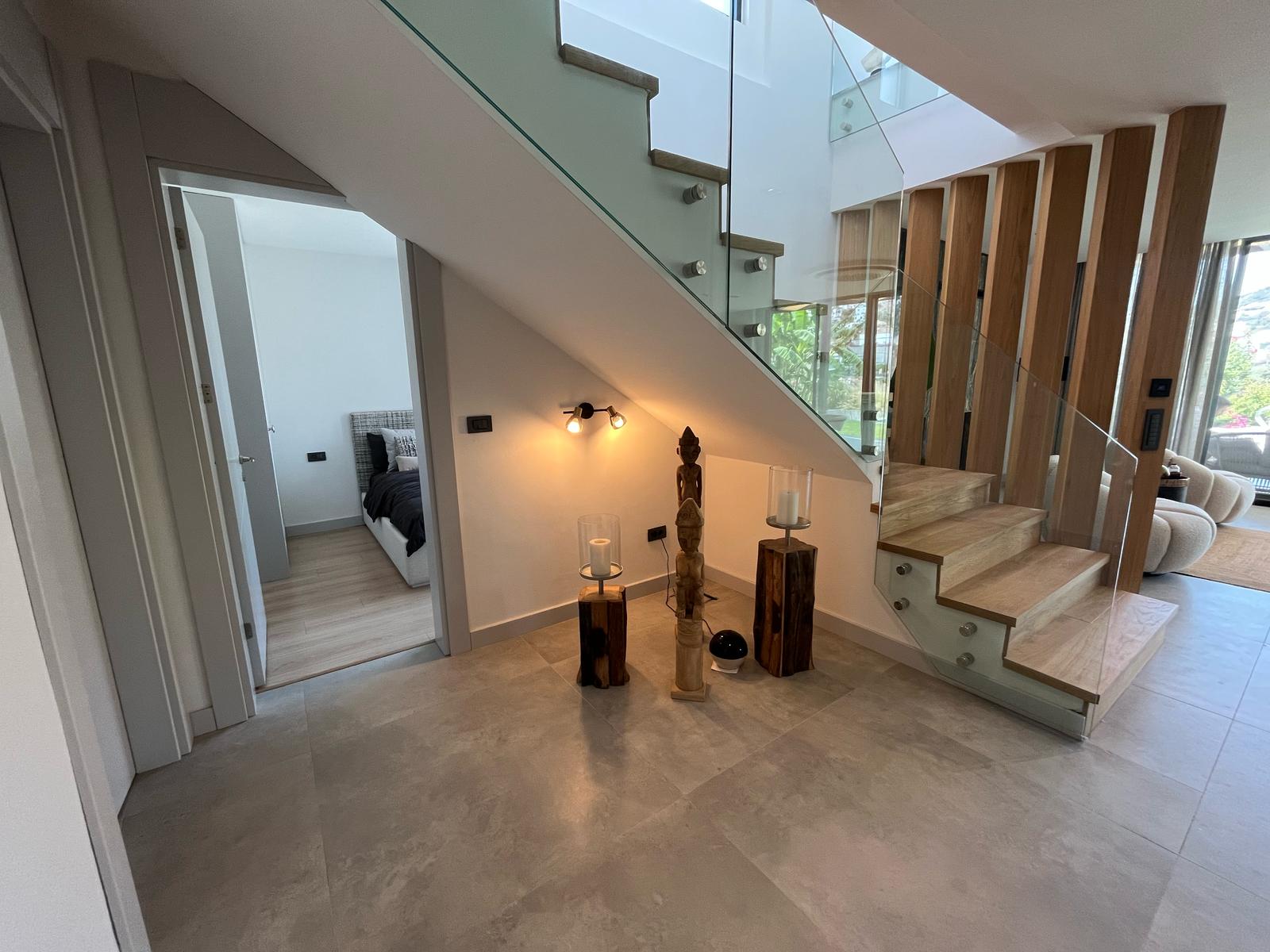 Each of the five bedrooms comes with its own en-suite bathroom, providing privacy and comfort for family members and guests alike. Two bedrooms are conveniently located on the ground floor, ideal for easy access, while the remaining three are upstairs—each opening onto a private balcony with captivating sea or nature views.