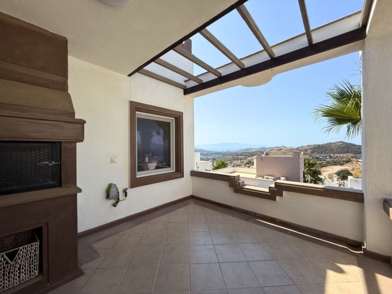 Nestled in the tranquil hills of Gumusluk, this detached sea view duplex villa combines timeless Mediterranean charm with modern design and resort-style amenities. Designed for comfort, privacy, and a sophisticated coastal lifestyle, the villa sits within a secure, well-managed complex that captures the essence of elegant Bodrum living.Architectural Elegance & Inspired Design