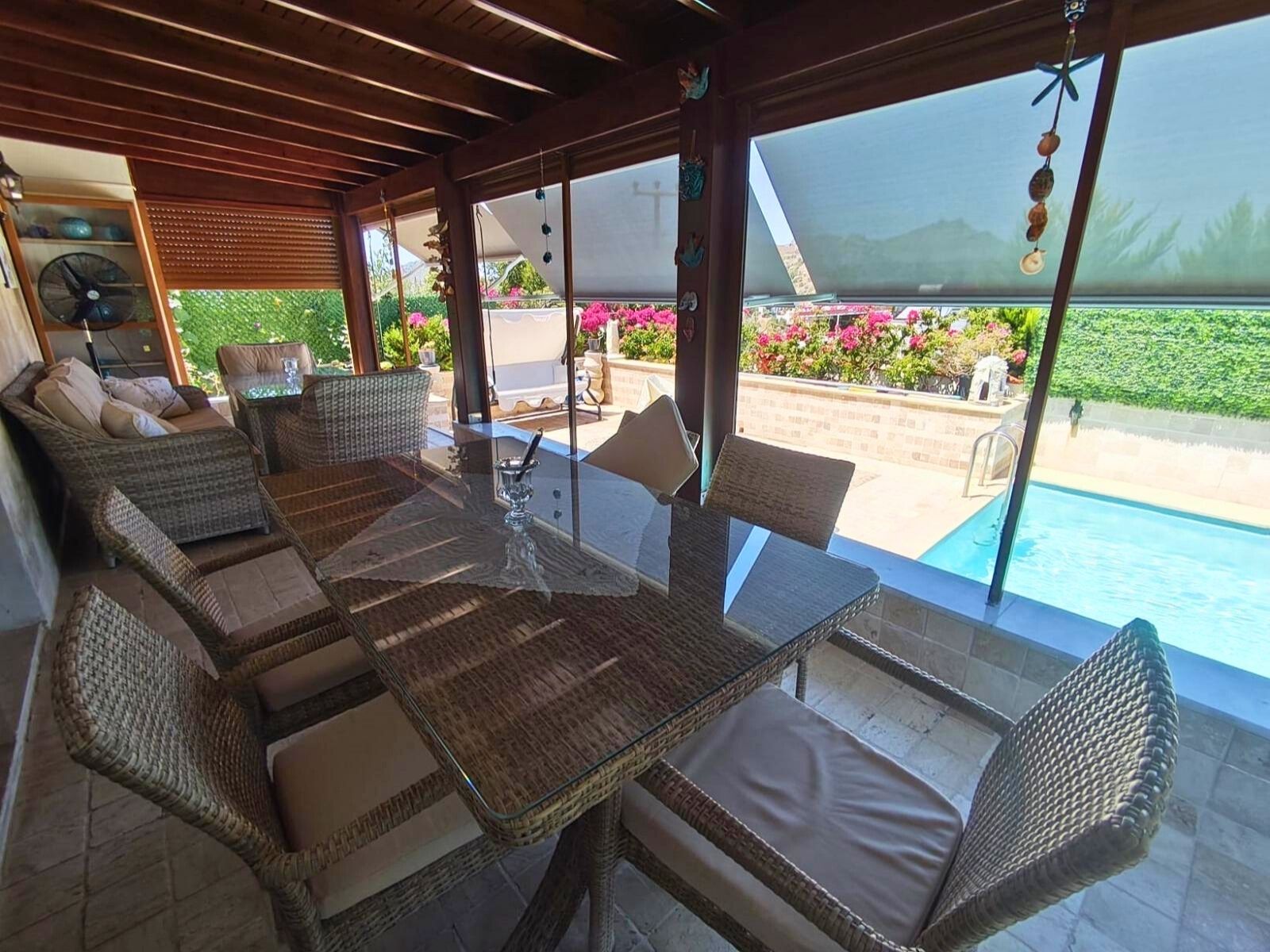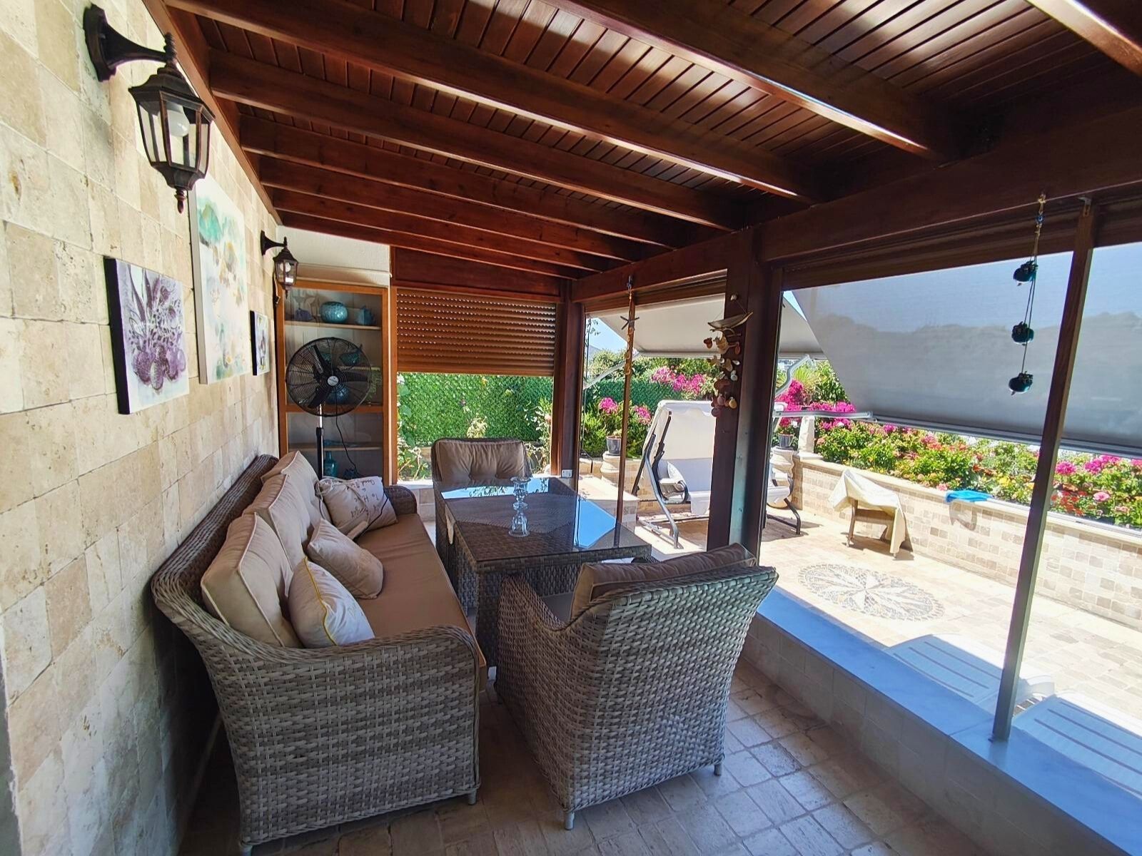 Every aspect of the villa is designed for comfort and convenience. A central heating system ensures year-round livability, making it ideal not just as a summer home but as a permanent residence. Practical touches such as a storage room, indoor garage, and water tank enhance functionality, ensuring everything you need is always within reach.Built with quality materials and maintained with care, the property reflects durability and modern standards while remaining true to Bodrum’s timeless aesthetic—clean lines, open spaces, and the natural elegance of the Aegean environment.