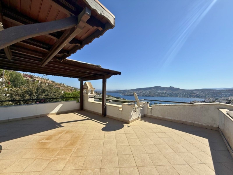 Nestled within an exclusive seaside complex, this semi-detached villa with private beach access represents the quintessential Bodrum lifestyle—where timeless coastal beauty meets relaxed sophistication. With panoramic sea views, a large roof terrace, and a separate guest apartment, this property is ideal for those seeking both a serene retreat and a smart investment in one of the region’s most sought-after coastal enclaves.Prime Coastal Setting & Private Beachfront Living
