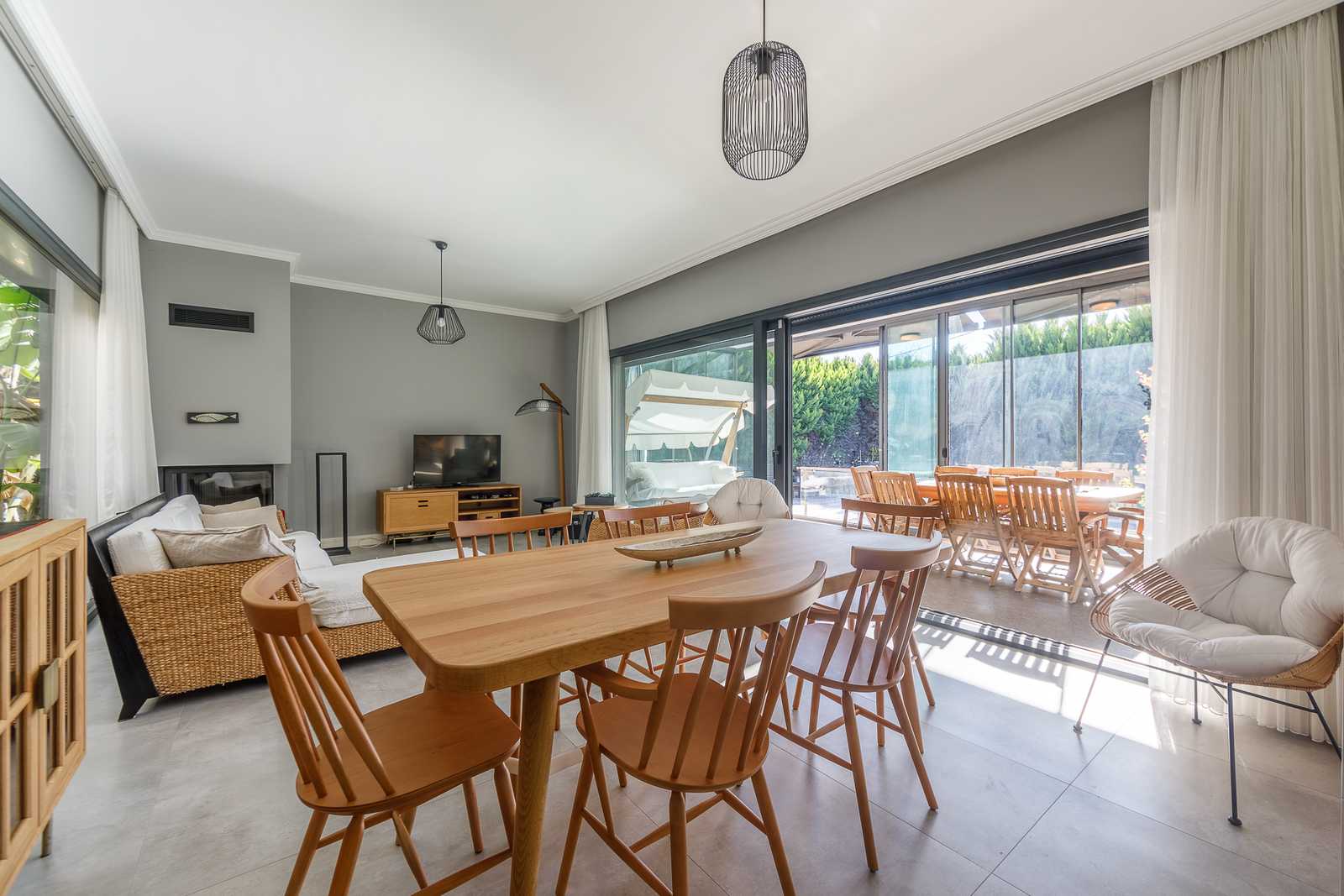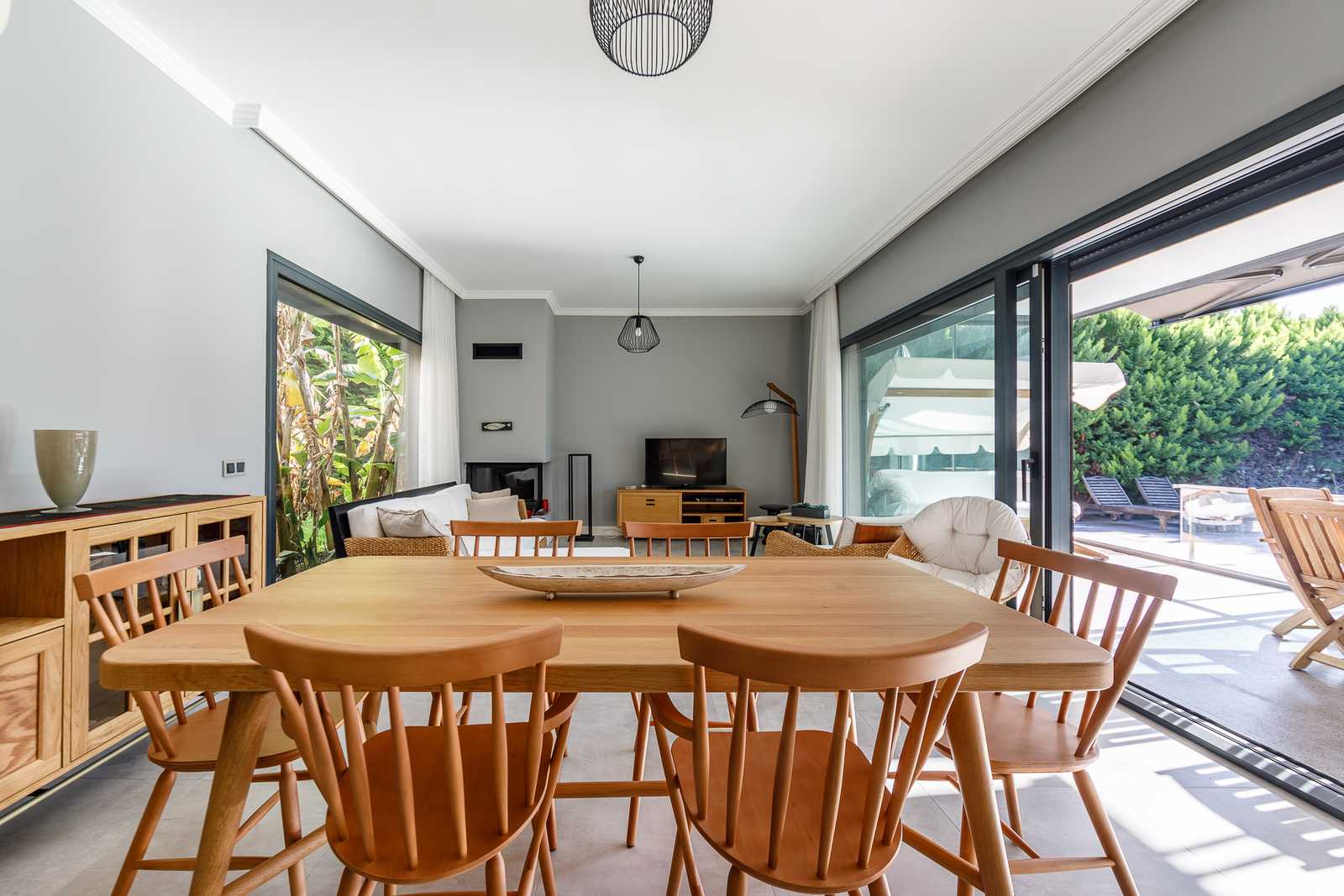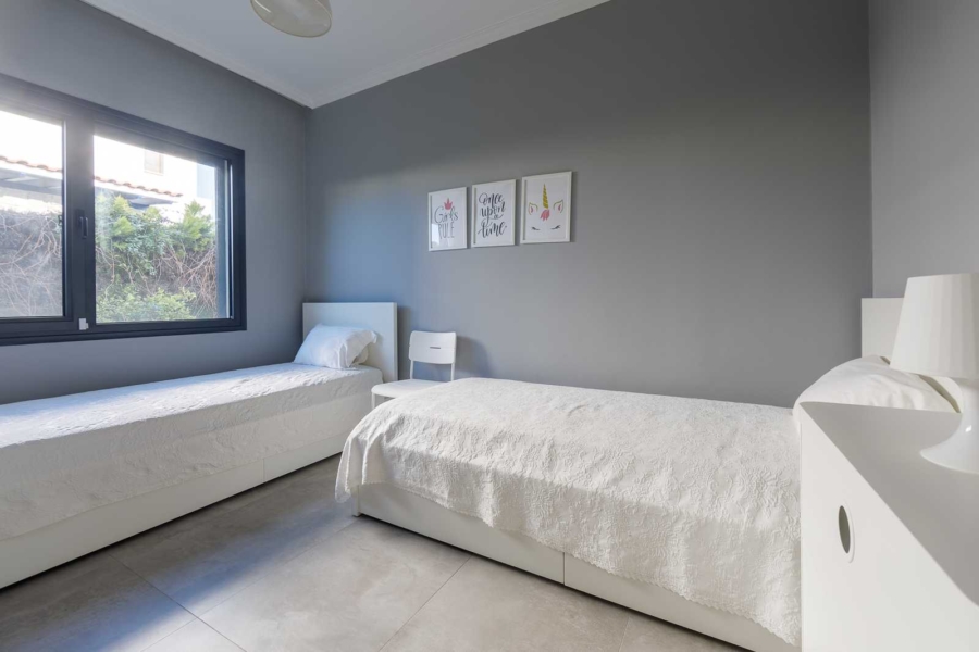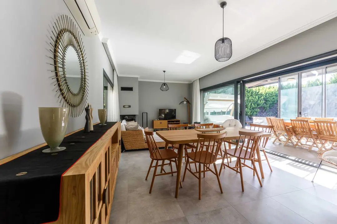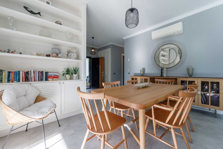 Set on a 580 m² private plot with 180 m² of interior space, this residence embraces an open, light-filled layout that flows naturally between indoor and outdoor areas. Every detail has been carefully curated to enhance comfort and tranquility. The home features three spacious bedrooms and two elegant bathrooms, each crafted with high-quality finishes and modern aesthetics.Natural materials, soft tones, and expansive windows create an atmosphere of calm sophistication, connecting the interiors with the surrounding garden and pool. The fireplace adds warmth and character, transforming the villa into a year-round retreat.Private Pool & Outdoor Serenity