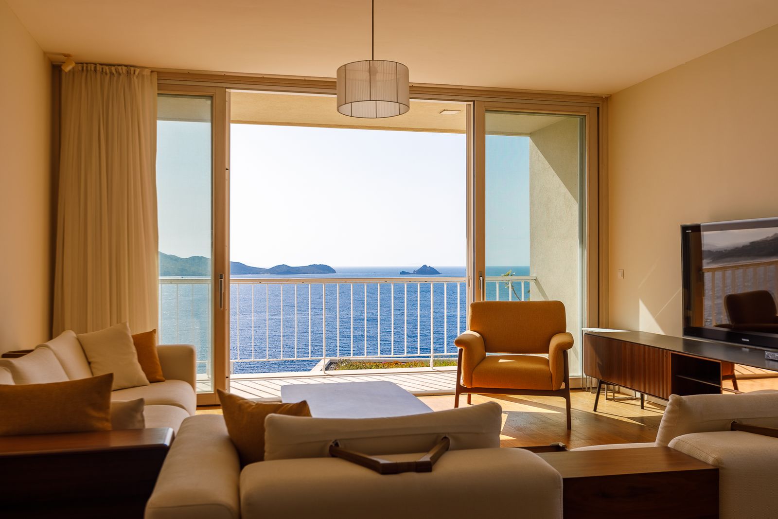 Step outside to your private infinity-edge pool, perfectly positioned to enjoy panoramic views of the sea. A dedicated sun deck and shaded lounging area provide the ideal setting for warm summer days and sunset gatherings.