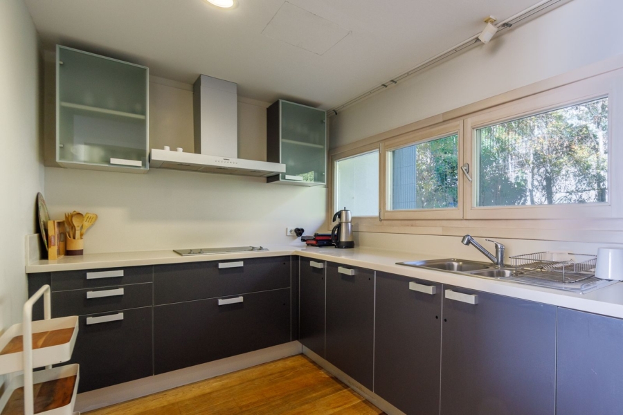 Natural light fills every corner through floor-to-ceiling windows, emphasizing the clean lines and open-concept design of the living area. The modern kitchen and dining zone seamlessly connect to the lounge and outdoor terrace, creating a space perfect for both relaxing and entertaining.