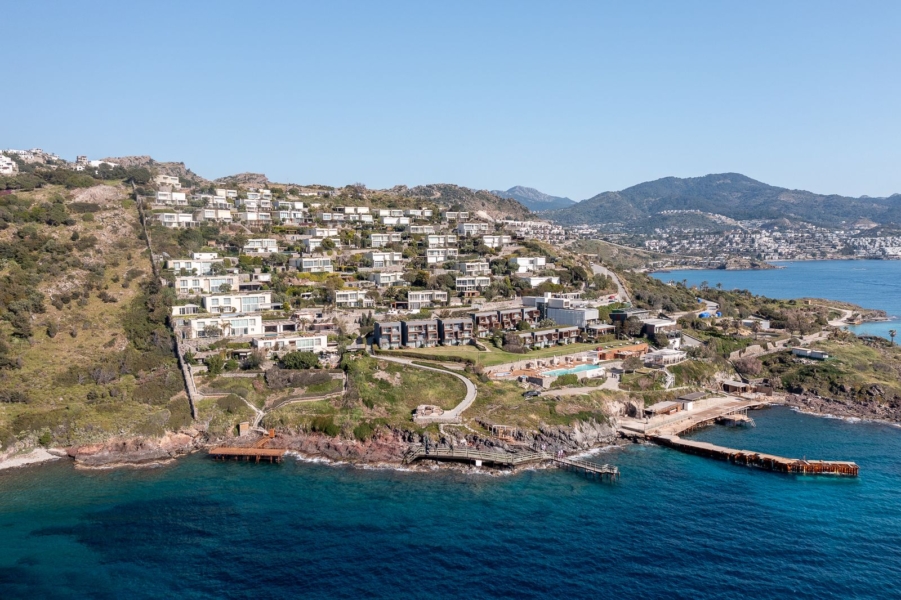 From here, you’ll enjoy direct access to a private beach and pier, allowing you to dip into the crystal-clear Aegean waters at any moment — a true luxury of coastal living in Yalikavak.