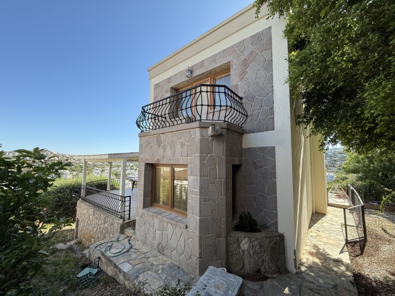 Set on a 690 m² plot with 350 m² of enclosed living space, this villa has been designed for comfort, practicality, and elegance. The main residence features four bright and airy bedrooms, including one en-suite master bedroom, a family bathroom, and a guest WC. Each room has been thoughtfully crafted with attention to detail, offering natural light, storage space, and tranquil views.The separate, fully fitted kitchen is both spacious and functional, ideal for family gatherings or hosting dinner parties. It includes modern appliances, ample counter space, and a dedicated storage area. The open-plan living and dining room seamlessly flows out to a very large shaded terrace overlooking the Aegean—a perfect spot for al fresco dining, relaxation, or entertaining guests.Private Guest Apartment for Added Flexibility